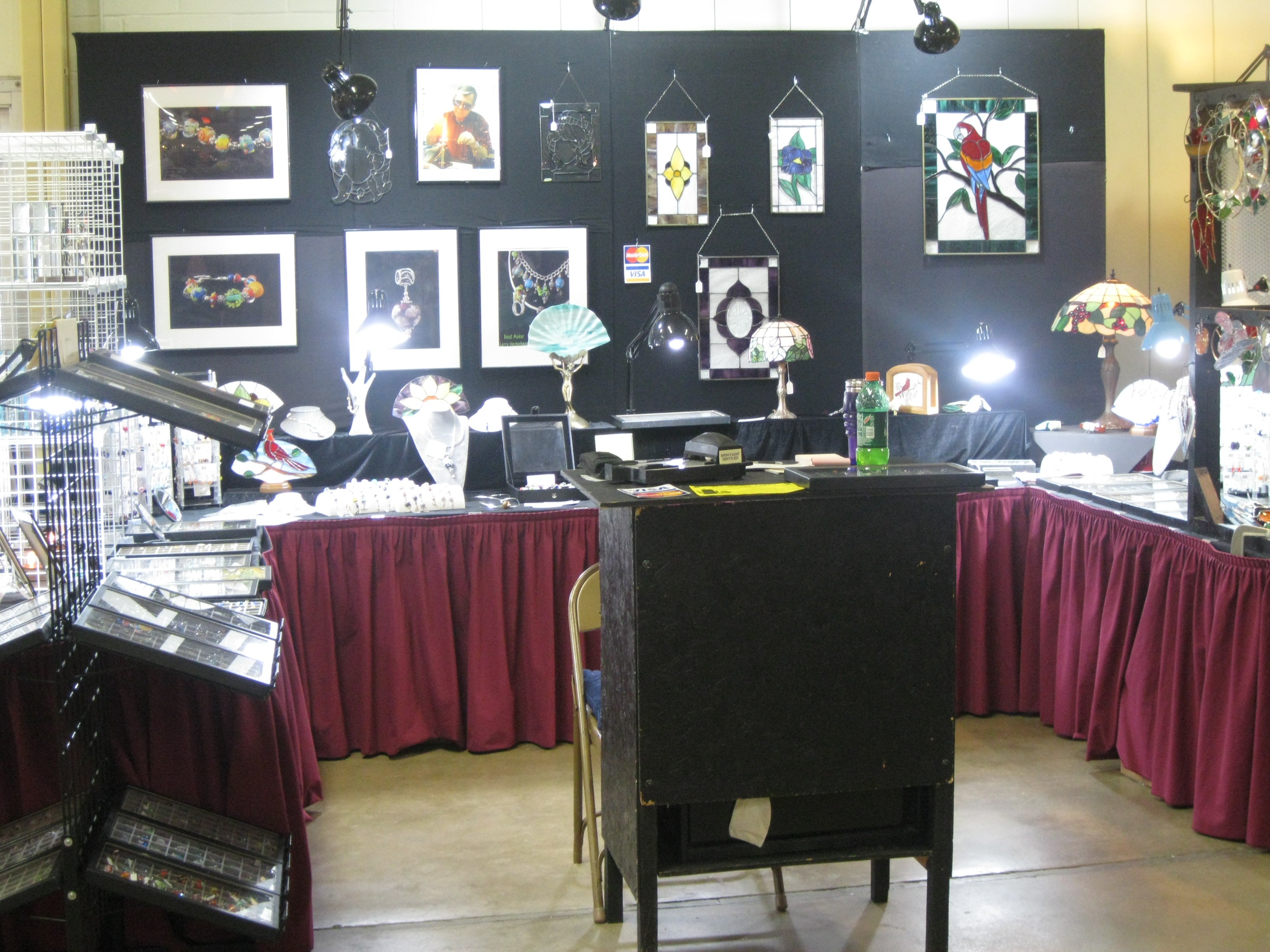 Every year for the past 30 years we go to the fair in Belle-Clair Exposition Center & Fairgrounds in Belleville, IL and we sell our stained glass panels and beads. This is one of many displays of our merchandise that we have in our studio.