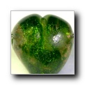 Green Goldstone and clear. 1 1/2 inches long X 1/2 inches wide at widest part.